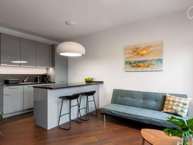 Diese möblierte luxuriöse 2-Zimmer-Wohnung mit Süd-West Ausrichtung befindet sich in der 4. Etage eines exklusiven Wohnkomplexes. Mit einer großzügigen Wohnfläche von 77m² bietet sie ein komfortables...
