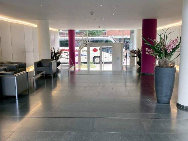 Das moderne Bürogebäude grenzt direkt an den Ansgarhof und das ABC-Forum und bildet inmitten des ABC-Viertels einen architektonischen Akzent. Im Innenhof befindet sich eine Grünanlage mit Wasserfläch...
