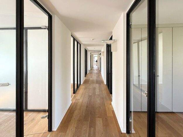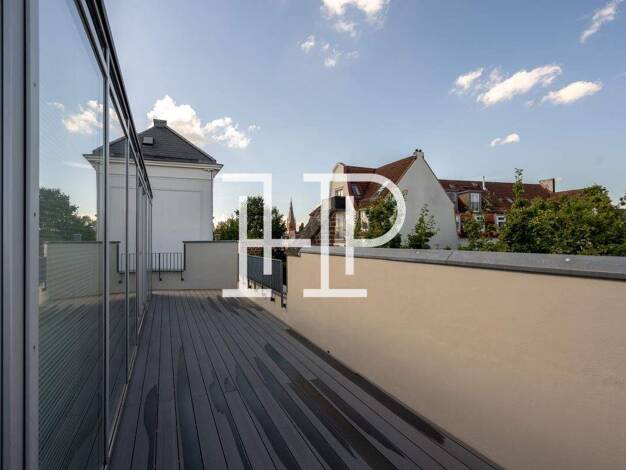 Die Dachgeschosswohnung besticht durch ihre hochwertige Ausstattung und ihr durchdachtes Raumkonzept: Edle Echtholzdielen verleihen den Wohnräumen eine warme, elegante Atmosphäre. Glatt verputzte Wän...
