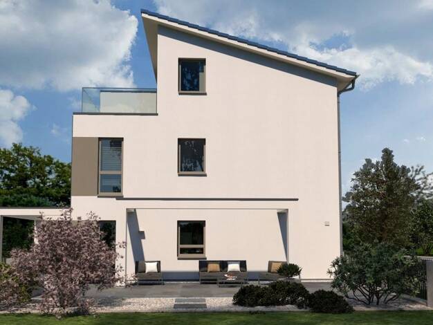 Diese moderne Doppelhaushälfte vereint auf rund 125 m² effiziente Planung, hohen Wohnkomfort und eine helle, freundliche Atmosphäre. Die verlängerte Traufseite schafft zusätzlichen Wohnraum und sorgt...