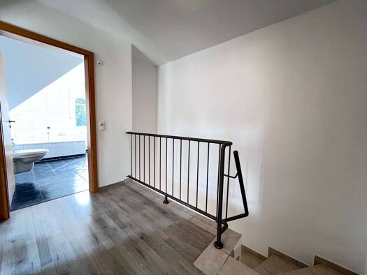 Diese großzügige Wohnung im Ober- und Dachgeschoss eines gepflegten Wohn- und Geschäftshauses überzeugt durch ihre helle und freundliche Atmosphäre. Im Obergeschoss befindet sich ein einladender Flur, ein lichtdurchflutetes Badezimmer mit Badewanne, ein geräumiger Abstellraum sowie zwei große, helle Schlafzimmer mit pflegeleichten Fliesenböden. Beide Schlafzimmer bieten direkten Zugang zum Wintergarten, der durch seine Helligkeit und gemütliche Atmosphäre zum Verweilen einlädt. Das Herzstück de...