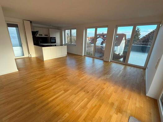 In diese großzügige und moderne Wohnung fühlen sie besonderes Wohl mit viel Licht, eigenen Garten und Waldblick. Wohnung bietet 1 großes Wohn/Esszimmer, 4 Schlafzimmer, 3 Bäder und 1 Einbauküche mit ...