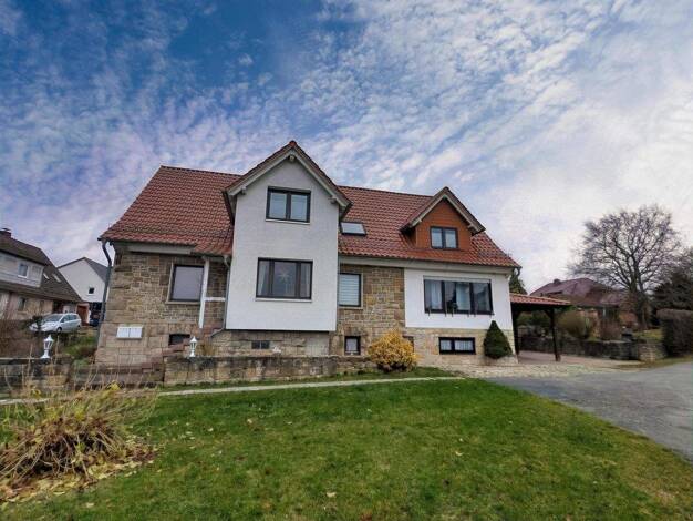 Zum Verkauf steht ein umfangreich saniertes Ein- bis Zweifamilienhaus BJ 1973 + Anbau 1978 auf einem weitläufigen 1003 m² Grundstück im Herzen von Breuna / OT Oberlistingen. Bereits bei erster Außenb...
