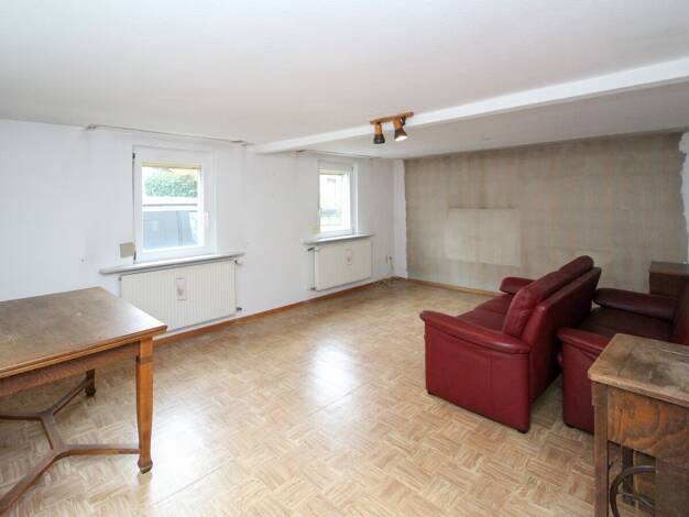Kurzbeschreibung Ginolfs bei Bad Neustadt, Wohnen wie im Urlaub! EFH, Bj. 1975, Grd. 1092 m², Wfl. 130,51 m², kein EA, NachtstromH (2025), Holz-H, Gas-ZH (1997) KP 215.000 € Objekt Erdgeschoss: Wohnz...