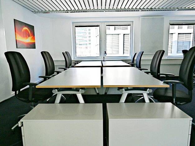 Buchen Sie ein voll ausgestattetes Büro für vier Personen und wir stellen sicher, dass alles durchgehend reibungslos funktioniert. Beeindrucken Sie Ihre Kunden in unserem eleganten Büro in der Mergen...