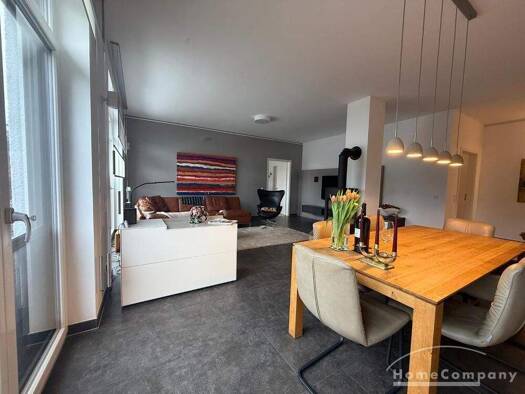 4 Zimmer Wohnung mit exklusiver Ausstattung.Wohnen: modern möbliert, großes Eckledersofa, Kamin und Zugang zum GartenDer Essbereich befindet sich ebenfalls im großen Wohnbereich, mit Platz für 6 Pers...