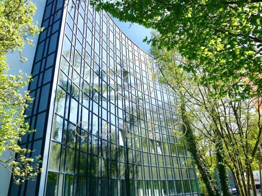Die moderne Büroimmobilie zeichnet sich durch ihre repräsentative gerundete Glasfassade aus. Sie besteht aus zwei gepflegten Gebäuden, die im 1.OG über eine großzügige Terrasse miteinander verbunden ...