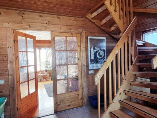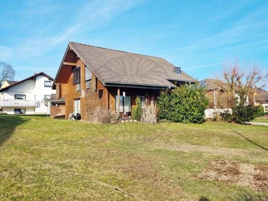 Dieses charmante Einfamilienhaus wurde in Blockbohlenbauweise errichtet und bietet eine Wohnfläche von 121 m² auf einem großzügigen Grundstück von 572 m². Das Objekt verfügt über eine Garage und Stel...