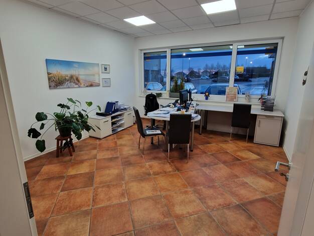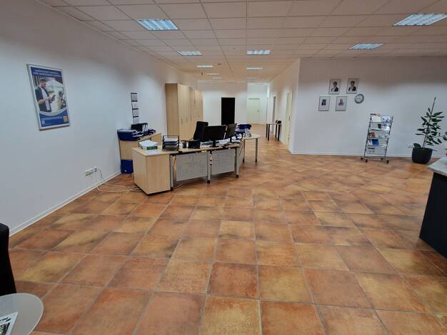 Fläche 290 m² Aufteilung: Eingangsbereich mit großem Empfangstresen, 3 gleich große Einzelbüros, großer MA-Aufenthaltsraum mit Küchenzeile (kann übernommen werden), Werbemittelraum/Abstellraum, Toile...