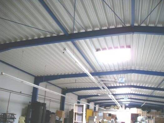 3-schiffiger Stahlbau mit Trapezblech, die 3 Hallensegmente sind untereinander mit durch eine Brandschutzwand getrennt (eine Verbindung der Bereiche ist gegeben und durch z.B. Tore erweiterbar), mine...