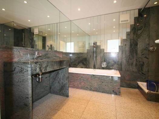 Die Wohnung wurde hochwertig und zugleich pflegeleicht ausgestattet: Naturstein Granit auf den Böden, auf der Schlafebene Vinyl. Großzügige Küchenausstattung, die Küchenarbeitsplatten ebenfalls Grani...