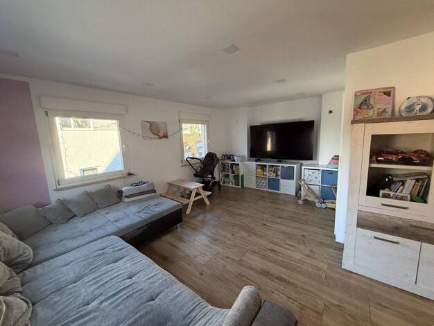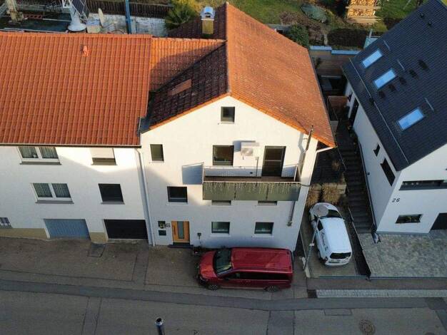 Modern möblierte 2,5-Zimmer Wohnung mit Stellplatz und separatem Eingang in zentraler Wohnlage in Erdmannhausen. Einkaufsmöglichkeiten, Restaurants, Cafes und öffentlichen Verkehrsmittel (Bus) befinden sich in unmittelbarer Nähe. AUFTEILUNG: - Wohnbereich, möbliert mit Schlafsofa, Sessel, Wohnzimmerschrank und TV-Gerät - Essbereich mit Esstisch, vier Stühlen und Sideboard - Schlafzimmer mit Doppelbett (180x200) und großem, begehbarem Kleiderschrank - voll ausgestattete Einbauküche mit Kühlschra...