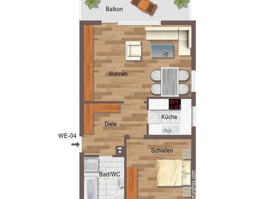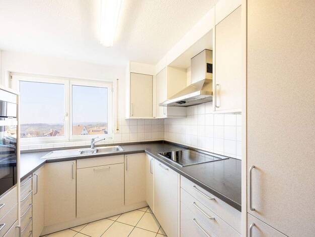Modern möblierte 2,5-Zimmer Wohnung mit Stellplatz und separatem Eingang in zentraler Wohnlage in Erdmannhausen. Einkaufsmöglichkeiten, Restaurants, Cafes und öffentlichen Verkehrsmittel (Bus) befinden sich in unmittelbarer Nähe. AUFTEILUNG: - Wohnbereich, möbliert mit Schlafsofa, Sessel, Wohnzimmerschrank und TV-Gerät - Essbereich mit Esstisch, vier Stühlen und Sideboard - Schlafzimmer mit Doppelbett (180x200) und großem, begehbarem Kleiderschrank - voll ausgestattete Einbauküche mit Kühlschra...
