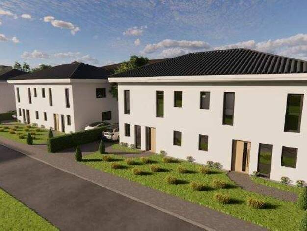 *** Energieausweis ist in Vorbereitung und liegt zur Besichtigung vor *** In einer ruhigen, familienfreundlichen Wohngegend entstehen sechs moderne Doppelhaushälften im energieeffizienten KfW-55-Stan...