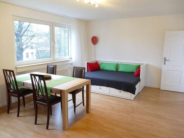 (ENGLISH: below) Minimum 18 Monate - 18 months Rheinlage! Dom- und Rheinblick vom Küchenfenster aus Die sanierte und schön möblierte helle Wohnung besteht aus 4 durch Türen getrennte "Räume": - Wohn/...