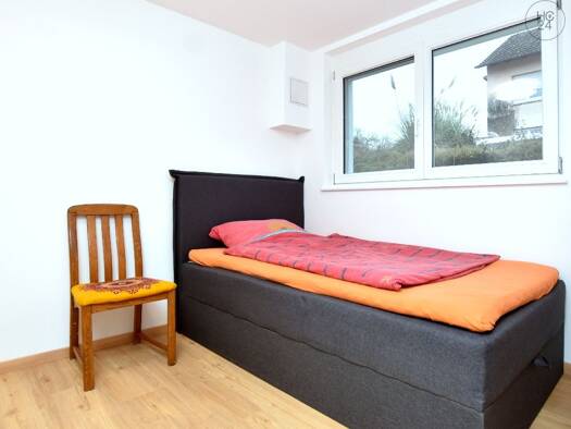 Die modern möblierte 2-Zimmer-Wohnung mit 48 qm liegt im Souterrain eines neu erbauten Zweifamilienhauses in einer ruhigen Lage im Ortsteil Dettingen in Konstanz. Die Wohnung verfügt über einen eigenen Eingang mit Treppe zur geräumigen Terrasse ins Souterrain. Im offen gehaltenen Wohn-Essbereich finden Sie eine komplett ausgestattete Einbauküche, inklusive Spülmaschine, Backofen mit Mikrowellenfunktion und Gefrierschrank, einen Esstisch mit Stühlen, einen Sessel und einen 2-türigen Mid-Century-...