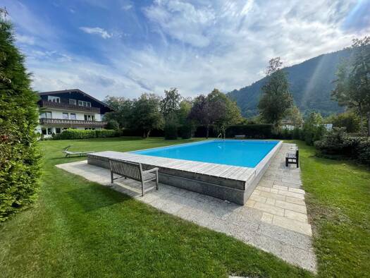 Die charmante Landhausvilla mit Herz präsentiert sich auf einem ca. 2.350 m² großen, sonnigen Grundstück mit Traumblick in die Blauberge und auf den Leonhardstein. Ein Rückzugsort mit Seele, hier füh...