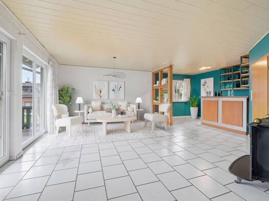 Es handelt sich hier um eine sehr komfortable Wohnung mit Blick ins Rurtal und auf die Burg Nideggen. Zur Wohnung gehören ein schöner Gartenbereich und eine überdachte Terrasse. Die Wohnung verfügt über zwei Schlafzimmer, eines davon mit Ankleidezimmer, zwei Bäder, ( 1 x mit Dusche/Wanne/Toilette/2 Waschbecken, und 1 x mit Dusche/Toil./Waschbecken), eine Küche inclusive Einbauküche und Vorratsraum, sowie ein sehr geräumiges Wohnzimmer mit Ausgang in den Garten. Alle Fensteranlagen haben elektri...