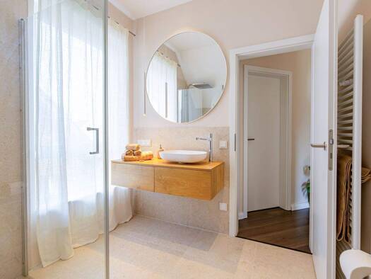 Diese Wohnung bietet mit ca. 101m² Wohnfläche eine großzügige und gut durchdachte Raumaufteilung. Beim Betreten der Wohnung gelangen Sie in den geräumigen und hellen Flurbereich, der viel Plaz für eine Garderobe oder zusätzliche Möbel bietet. Von hier aus erschließen sich die einzelnen Räume der Wohnung. Ein angrenzender Durchgangsbereich, der das große Schlafzimmer mit dem Badezimmer verbindet, lässt sich zudem gut als Arbeits- oder Ankleidezimmer nutzen. Die separate Küche ist mit einer moder...