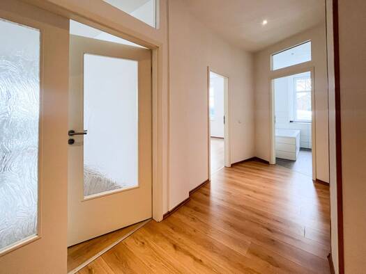 Ihre neue Wohnung befindet sich im 1. Obergeschoss eines sanierten Mehrfamilienhauses. Ein Kellerraum vervollständigt das Angebot. Bitte beachten Sie, dass die Wohnung momentan vermietet ist. Die dargestellten Aufnahmen sind Beispielbilder und dienen zur Illustration des Ausstattungsstandards.