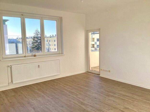 Die geräumige 3-Raumwohnung befindet sich im 4.OG des gepflegten Neubaus. Über den Flur gelangen Sie in das große Wohnzimmer mit Zugang zum Balkon. Hier hat man einen schönen Ausblick auf die Umgebun...