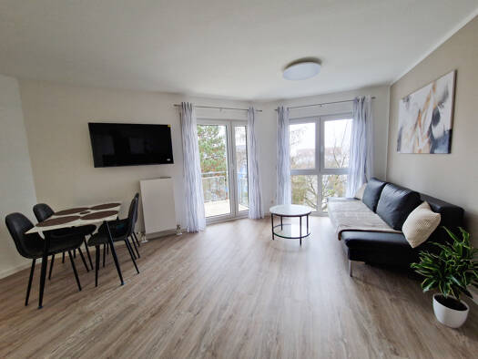 Gerne können Sie einen Besichtigungstermin mit der Vermieterin, Frau Silvia Richter, telefonisch unter 0173-969 92 96 vereinbaren. Die sehr gut geschnittene 3 Raum Wohnung befindet sich im Erdgeschoss eines Mehrfamilienhauses. Das geflieste Tageslichtbad verfügt über eine Badewanne, eine Dusche, sowie einen Handtuchheizkörper. Die Waschmaschine kann im Bad aufgestellt werden. Alle Böden sind mit einem Vinylbelag in moderner Holzoptik ausgelegt.