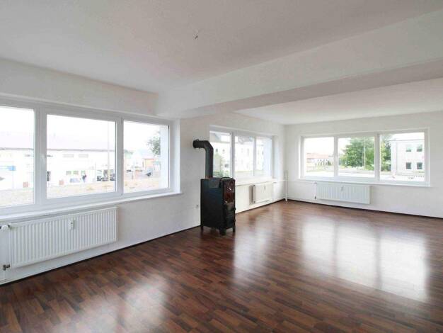 Die renovierte 3-Raum-Wohnung befindet sich im Erdgeschoss (links) eines Mehrfamilienhauses. Bodenbelag sowie Wand-und Deckenbeschichtung wurden erneuert.