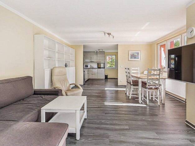 In Kuchelmiß, mit schneller Anbindung an die Autobahn und nur etwa zehn Autominuten vom Luftkurort Krakow am See entfernt, steht diese umfassend sanierte Doppelhaushälfte mit Anbau ein Haus mit Gesch...