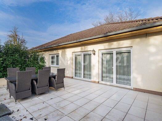Das im Jahre 2001 errichtete Einfamilienhaus im gefragten Bungalowstil überzeugt mit einem praktischen und barrierearmen Grundriss auf einer Wohnebene. Viel Licht dank großer Fensterflächen und Raumh...