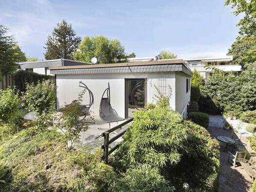 Dieses großzügige Einfamilienhaus mit Einlieger vereint die Vorteile von Wohnen und Arbeiten in einem Gebäude. Das eingeschossige Landhaus wurde 1963 in zeitloser Architektur erbaut, 1991 um die Wohn...