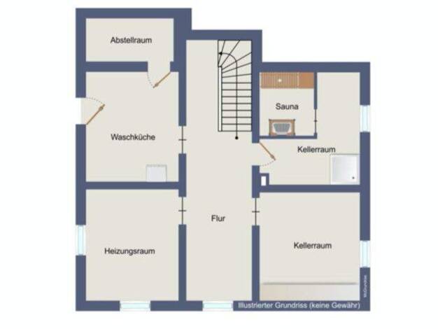 Der Hauseingang befindet sich oberhalb der Straße und ist mit einer Außentreppe ins Untergeschoss zu erreichen. Im Untergeschoss talseits Hauseingangsdiele, ein sehr großer Hobbyraum und ein Büro/Gäs...