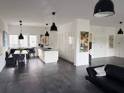 Das große parkähnliche Grundstück (ca. 6.700 m²) sowie der moderne Stil machen dieses exklusive Ein-/Zweifamilienhaus zu einem besonderen Angebot. Das Erdgeschoss bietet einen offenen repräsentativen...