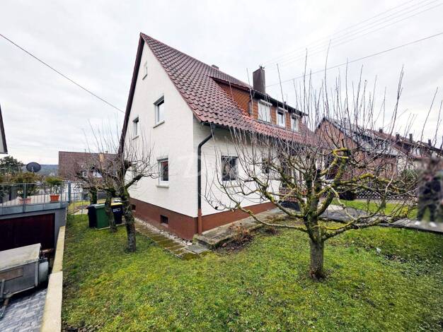 Diese Doppelhaushälfte in Enzberg überzeugt durch ihre helle Ausstrahlung, einen praktischen Zuschnitt und einen kleinen, pflegeleichten Garten. Auf einem Grundstück von etwa 205 m² bietet das Haus d...
