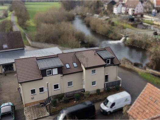 Dieses außergewöhnlich gepflegte Dachgeschosswohnung (im Grundriss rechts) befindet sich in Mühlacker-Lomersheim und überzeugt durch seine ruhige, naturnahe Lage direkt am Ufer. Es präsentiert sich a...