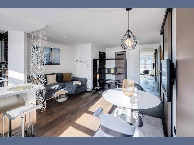 Loft Wohnung mit 2,5 Zimmern. In allen Zimmern bodentiefe Fenster. Raumhöhe knapp 4m. Eichen Parkett in allen Räumen. Modernes Bad mit Regendusche. Fußbodenheizung, Tiefgarage und Aufzug. Bergblick. ...
