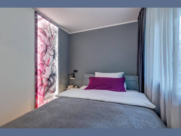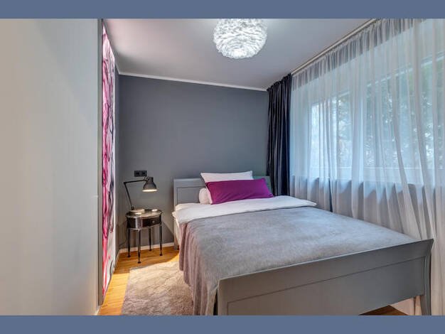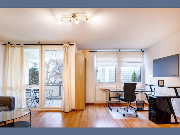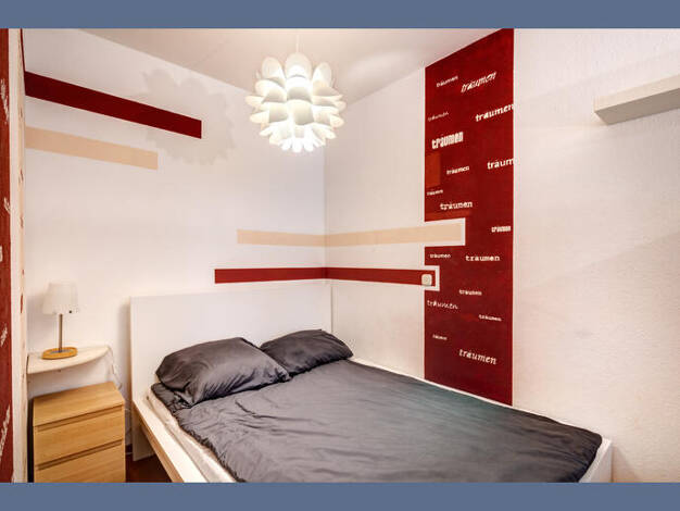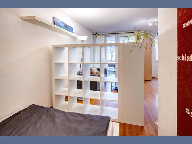 Weitere Informationen, viele hochauflösende Fotos und ein Video zu diesem Objekt finden Sie unter: https://www.mrlodge.de/wohnungen/detailansicht/7592/ See offer in English: https://www.mrlodge.com/search/detailed-view/7592/ Zimmer: Kombiniertes Wohn-/Schlafzimmer:, Schlafnische mit französischem Bett 140 x 200 cm, Regale, Sofa, Schreibtisch, Esstisch mit 4 Stühlen, Bad mit Badewanne Bodenbelag: Laminatboden, Fliesenboden Möblierung: gemischt, einfach, durchschnittlich Küche: Einbauküche, Ceran...