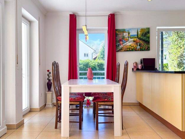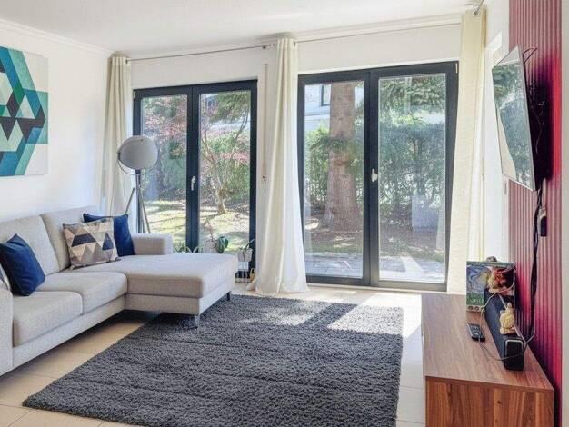 Eine charmante, großzüg geschnittene Wohnung zum wohlfühlen. Große Fensterflächen sorgen für ein lichtdurchflutetes Wohnambiente, während die großzügige Terrasse mit eigenem Garteinanteil in Süd-/Ost...