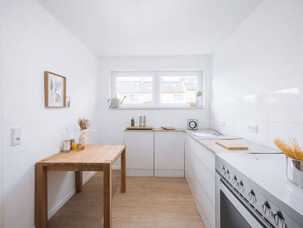 Diese ansprechende, vollständig renovierte Wohnung liegt im ersten OG. Zu der Wohnung zählen zwei schöne Zimmer. Ausstattung: Wohnbereich mit Laminat. Bad und WC weiß gefliest. Bad mit Badewanne, Was...