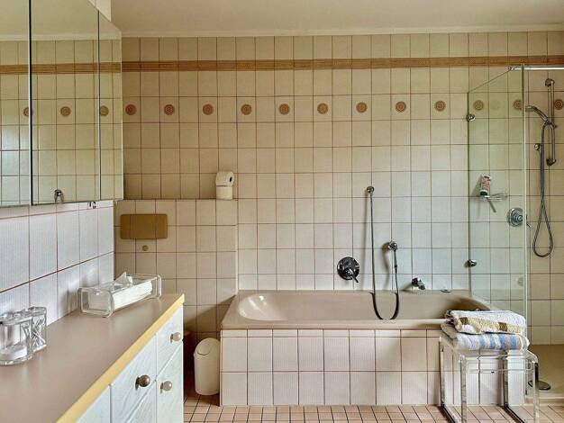 Das im Jahre 1929 massiv erbaute Einfamilienhaus wurde 1956 durch einen Wintergarten erweitert, der mit seinem weitläufigen Ausblick eine besondere Wohlfühlatmosphäre schafft und zum Entspannen einlä...