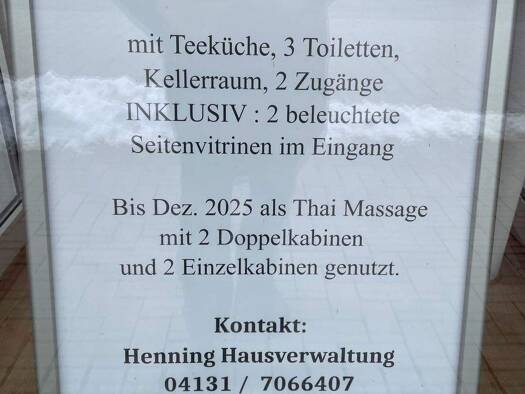 Es handelt sich um eine kleinteilige Fläche von insgesamt 108m², welche derzeit als (Thai-)Massagepraxis in 4 Räumen genutzt wird. Die Fläche kann kleinteilig als Praxis übernommen werden oder als Ve...