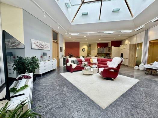 Diese besondere Immobilie - ehemals als Filiale der Sparkasse genutzt - wurde mit viel Idee in einen großzügigen, ebenerdigen Bungalow mit ca. 240 m² Wohn- und Nutzfläche verwandelt und bietet heute ...