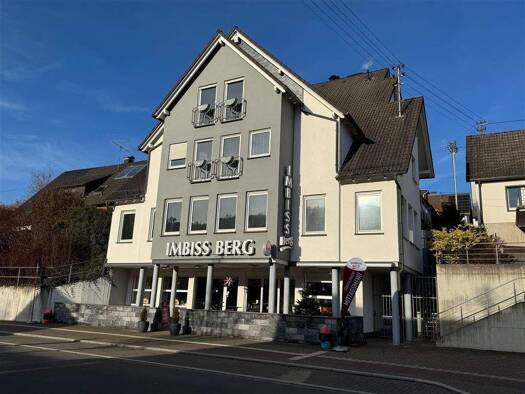 Das in 1996 erbaute Wohn-/Geschäftshaus besticht mit seinen Möglichkeiten. Über insgesamt 5 Etagen erstreckt sich dieses enorm große Gebäude aufgrund der Hanglage. Zur talseitigen viel befahrenen Bie...