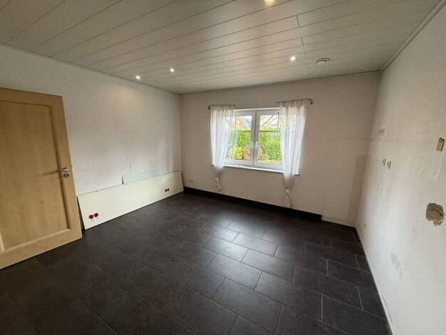 Das Objekt hat Holz-Rahmen-Fenster mit Isolierverglasung und Rollos. Die Wohnung befindet sich im 1. Obergeschoss. Hier gibt es eine Küche mit Balkon und Aussicht auf den Garten, ein Wohnzimmer, ein ...