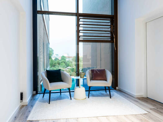 Top-repräsentativer Neubau mit Ganzglasfassade und exklusiven Eingangsbereichen. Alle Entrees verfügen über ein Galeriegeschoss und sind mit Naturstein und zwei Aufzugsbereichen ausgestattet. TG-Stel...
