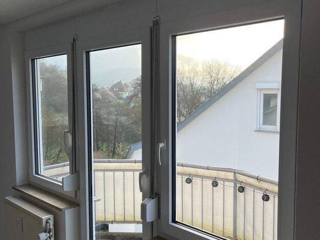 Diese 4 Zimmerwohnung wurde im Jahre 2016 kernsaniert und mit gehobener Ausstattung versehen. Sie verfügt über eine große Terrasse mit grandioser Aussicht. Die Terrasse ist teilweise überdacht. Teilweise sorgt eine elektrische Markise für Beschattung. Ein Garten rundet das Angebot ab. Zwei Stellplätze werden ebenfalls mit vermietet. Die Wohnung wird betreten über einen kleinen Flur mit Treppenhaus. Sie befinden Sie dann direkt im offenen Wohn- Essbereich mit hochwertiger Einbauküche. Die Marken...