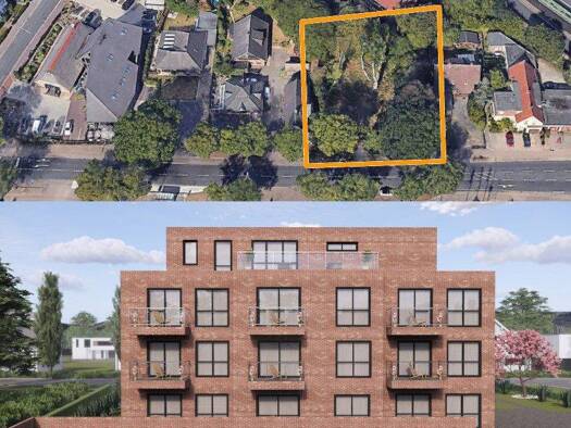 Dieses zum Verkauf stehende Grundstück mit einer Fläche von 1.226 m² umfasst eine vollständig erteilte Baugenehmigung sowie die fertige Planung für den Bau eines Mehrparteienhauses mit 17 Einheiten n...