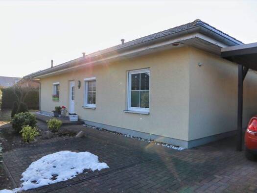 Der charmante Bungalow aus dem Jahr 2006 ist in massiver Bauweise erstellt worden und erfreut sich einer Wohnfläche von ca. 90 m² auf einem 505 m² großem Grundstück. Die Immobilie befindet sich in ei...