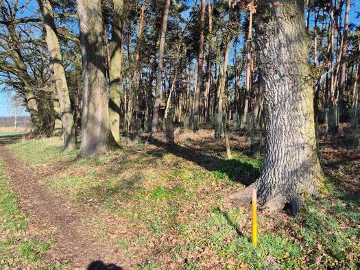 "Eigentlich Brettl-eben" mit prima Zufahrt Bestand: überwiegend Kiefer, randseitig größere Eichen