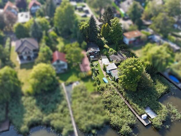 Das Wassergrundstück in ruhiger Lage befindet sich am Waldrand einer kleinen Wohnsiedlung. Das Areal verfügt über eine Breite von ca. 48,3 Metern und ist mit einem Nebengebäude sowie einem gepflegten...