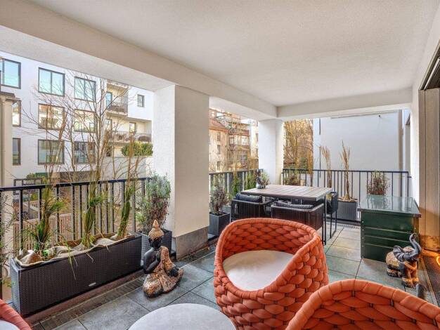 Willkommen in Au-Haidhausen! Schon die besondere Gestaltung des Entrees dieses Hauses: Natursteinböden, ein extravagantes Lichtkonzept und der Einsatz von Kupfer und Messing sorgen für einen repräsen...